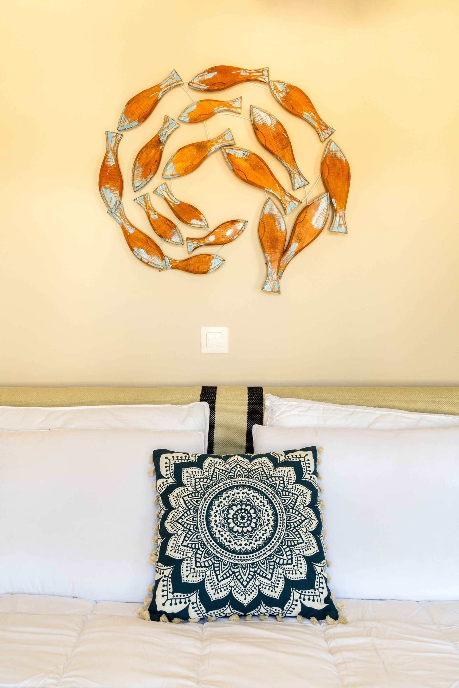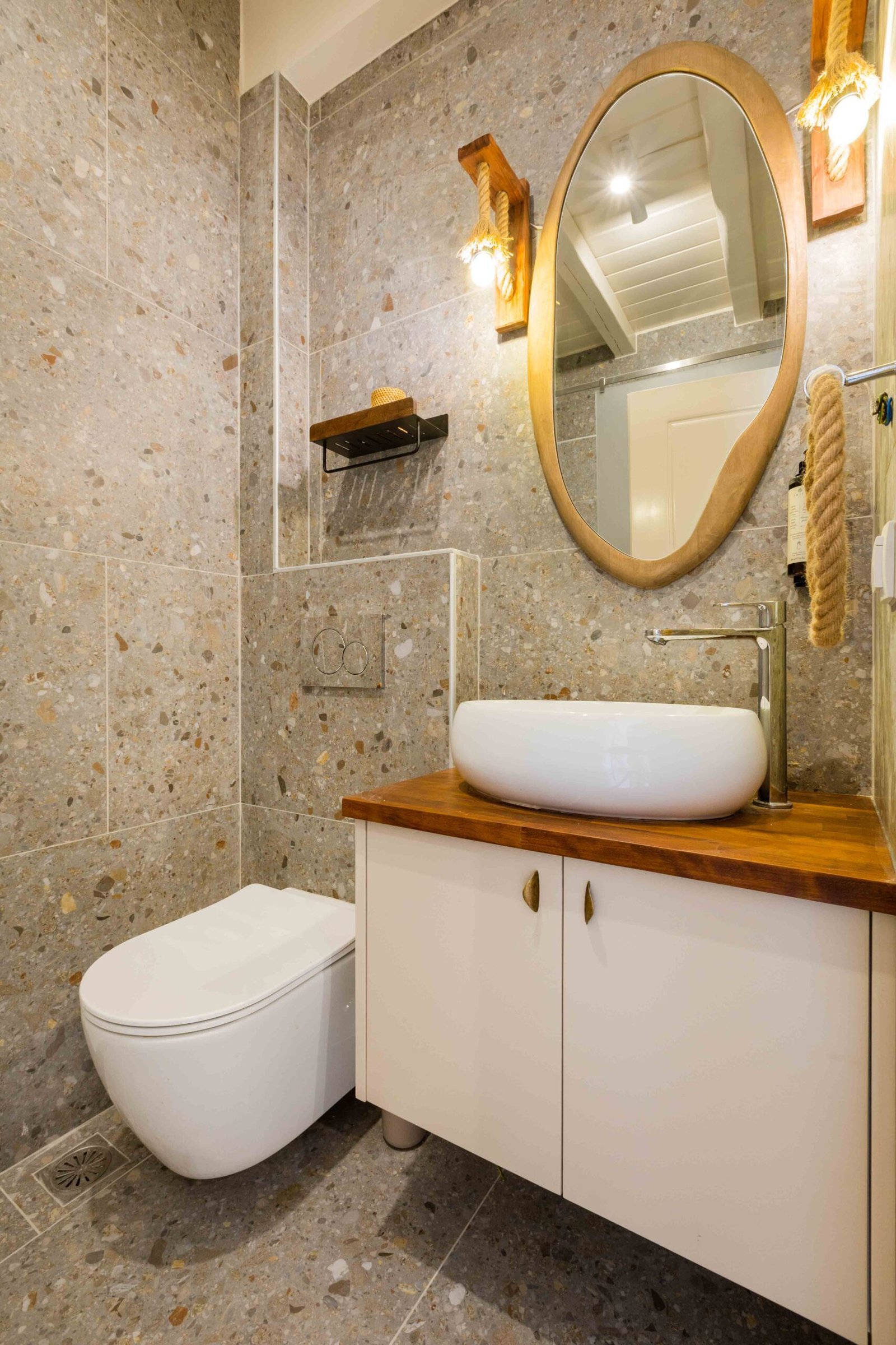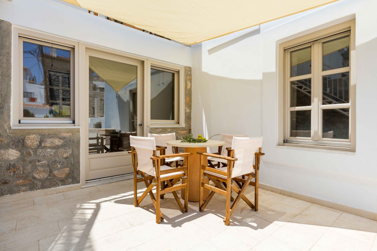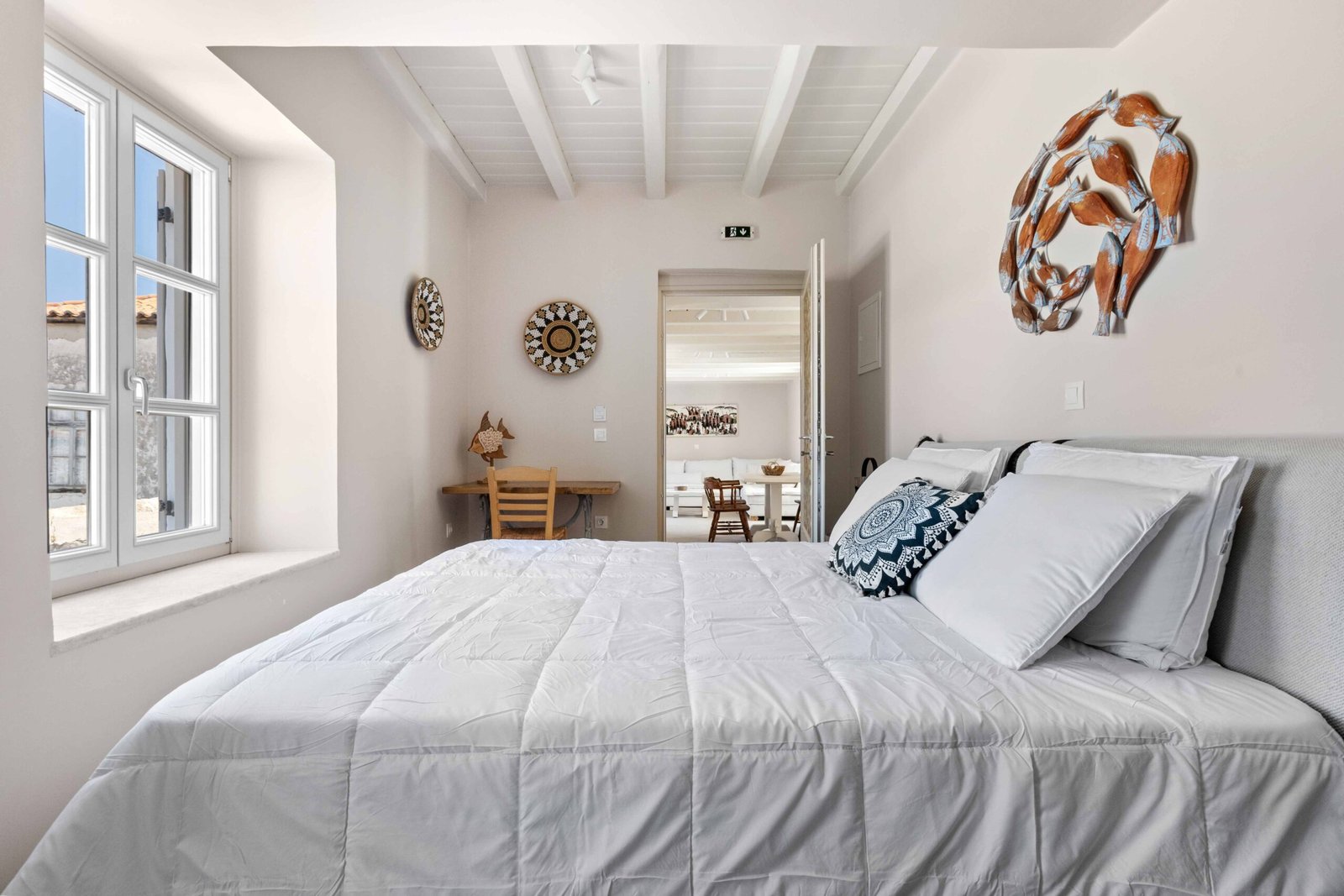 • The fully equipped kitchen includes a refrigerator, freezer, electric oven, stovetop, espresso machine, kettle, toaster, sandwich maker, cookware, plates, glasses, and cutlery. The space is complemented by a large corner sofa , a 43-inch Smart TV and a wooden backgammon board & many literature books, creating an ideal environment for relaxation.